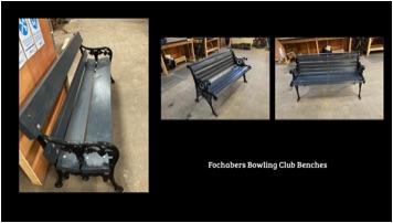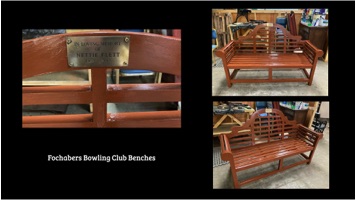 For the Fochabers Village Association we have been renovating the benches that are situated at the Square in Fochabers just now and they are well underway to being finished in the next few weeks.